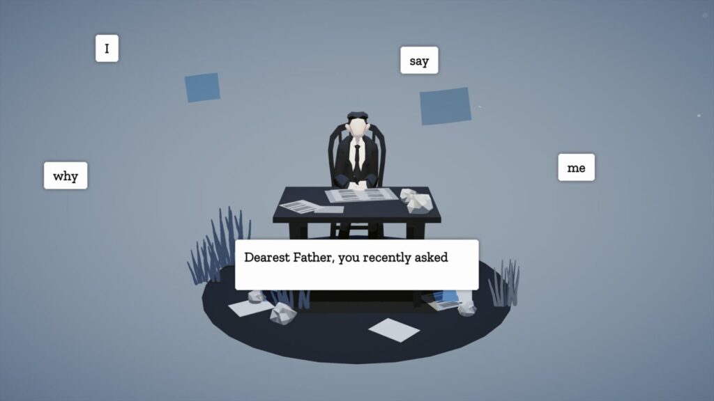 Il videogioco fatica a replicare la profondità originale delle opere di Kafka. Per il primo e l’ultimo capitolo (Il processo e Il castello) è prevista circa un’ora e mezza di gioco. Questo lasso di tempo impedisce di riprodurre la complessa psicologia dei personaggi. Al contrario, il capitolo Lettera al padre offre una semplice ma accurata serie di brevi videogiochi che riflettono la relazione complicata dell’autore col padre. Incentrare la storia sulle memorie e le emozioni di Kafka migliora molto l’esperienza di gioco. La sequenza di azioni da utilizzare per aiutare l’autore a scrivere la lettera rievoca un’altra serie di minigiochi incentrati sulla narrazione, Florence, sviluppati da Mountains e pubblicati da Annapurna (The Unfinished Swan, Outer Wilds).